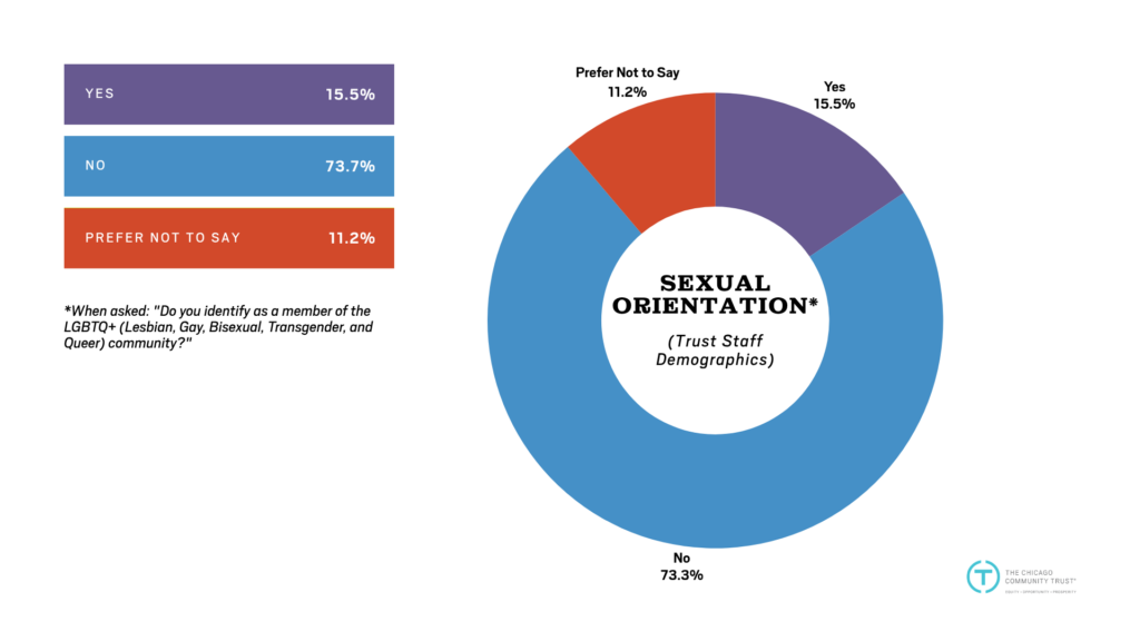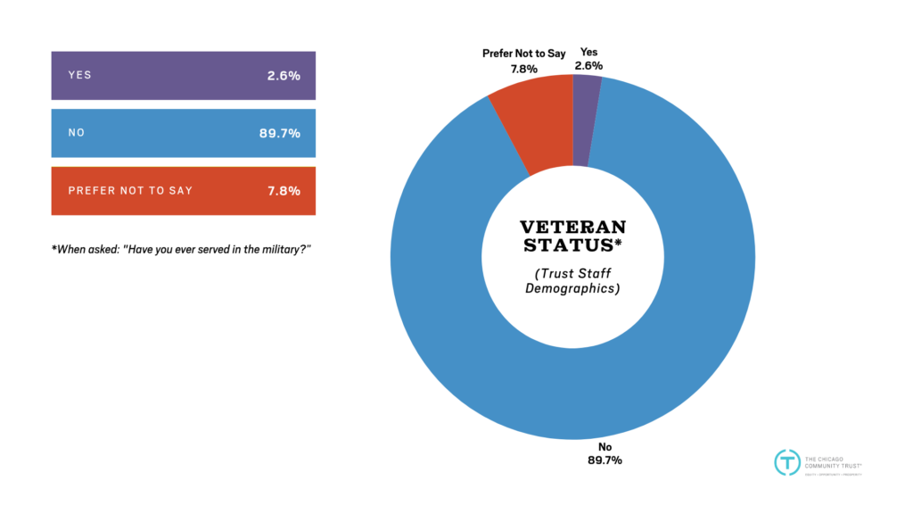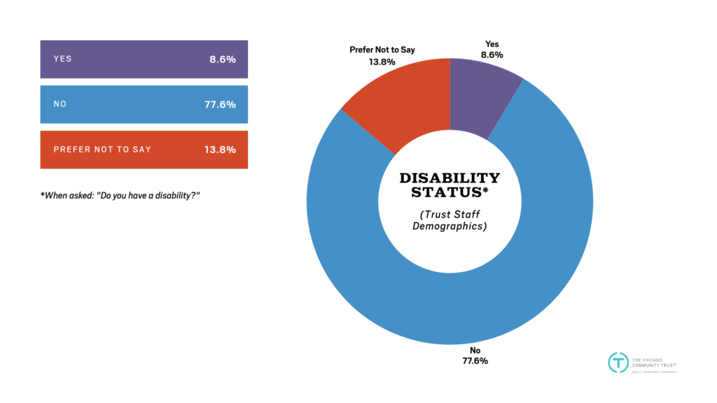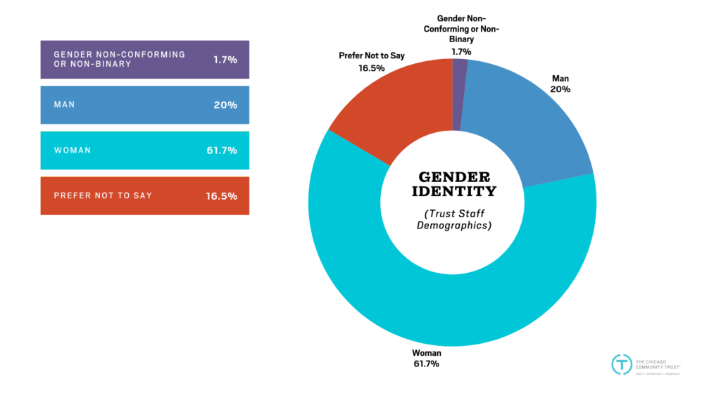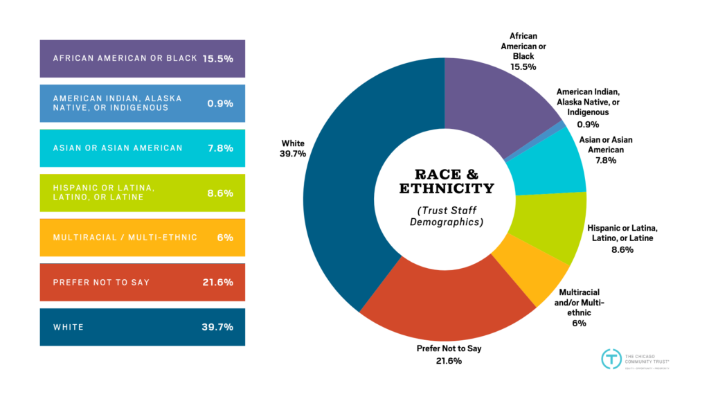 Disclaimer: The Trust does not consider demographic data when making employment decisions. Nor does the Trust discriminate based on race, gender, age, sexual orientation, or any other protected category when making employment decisions. The Trust uses nondiscriminatory measures to pursue diversity, and this demographic data should not be interpreted as mandating, encouraging, or permitting decisions based on protected characteristics.